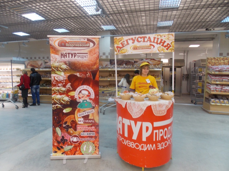 ОАО "Хлебокомбинат "Георгиевский " 20 декабря 2014г принял активное участие в открытии нового торгового центра "Лента" в городе Железноводске. Наши промоутеры представили на дегустацию покупателям новинки кондитерской продукции - Сдоба "Миледи" с вишневой начинкой и Круассаны мини с шоколадной начинкой, и уже полюбившиеся покупателю изделия - Хлеб "Орловский" и Зерновой. Было очень приятно слышать восхищенные отзывы по нашей продукции и слова благодарности от покупателей! .jpg)