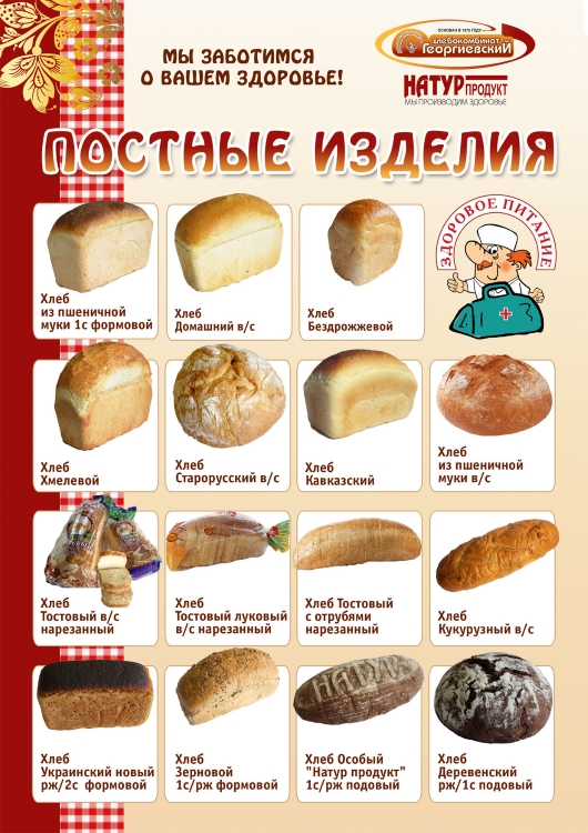 У нас очень большой выбор постной продукции хлебов, сушек, пряников, печенья.