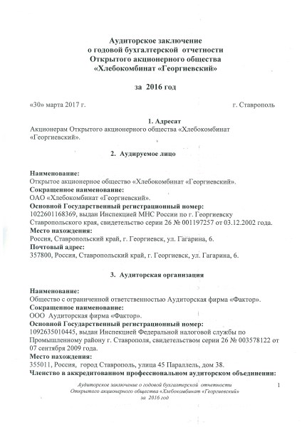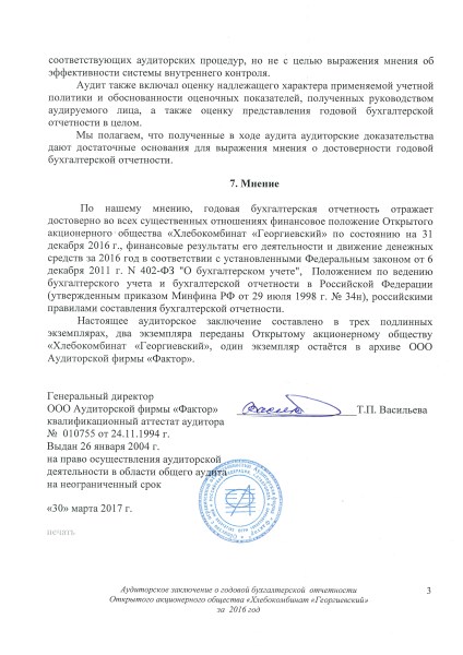 Аудиторское заключение годовой бухгалтерской отчетности за 2016 г